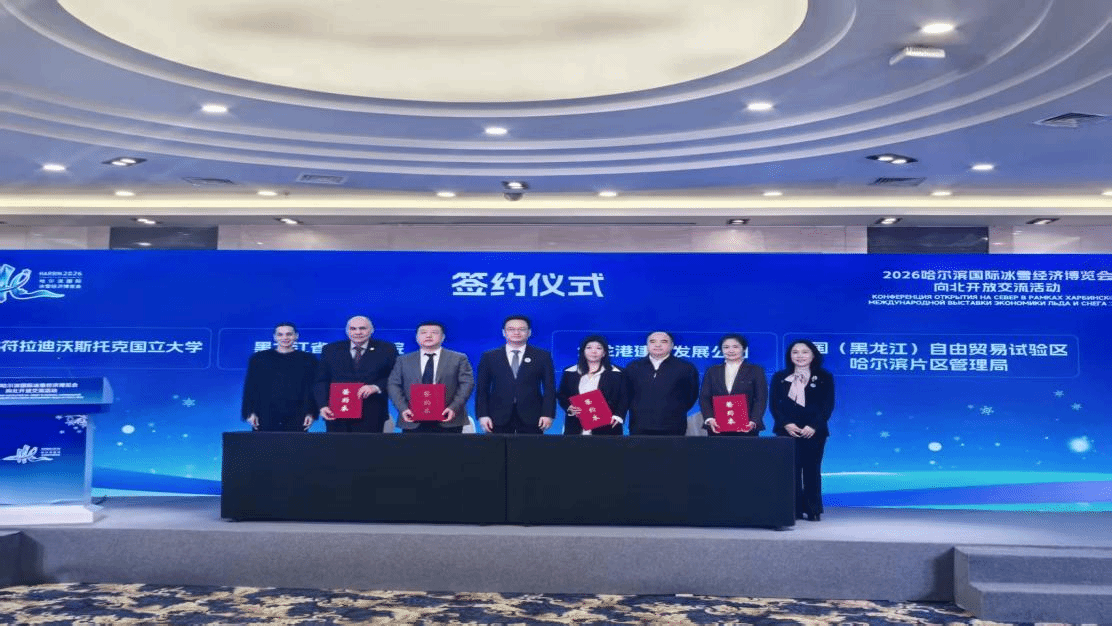 下午,两校在2026哈尔滨国际冰雪经济博览会上签署《黑龙江工程学院与俄罗斯符拉迪沃斯托克国立大学关于加强车辆工程等专业合作的备忘录》。