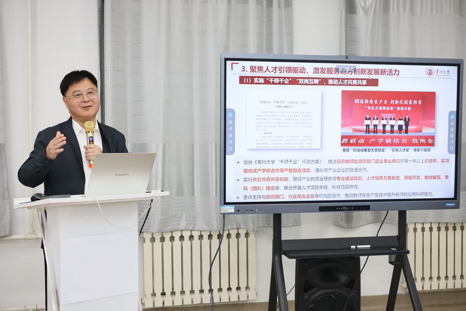 会上,华中科技大学教育科学研究院余东升教授作题为《外部融入,内部转型——应用型大学建设路径》的报告,从组织变革视角深入剖析应用型高校实现内涵式发展的关键机制;北京大学教育学院郭建如教授围绕《产教融合与“双优”应用型高校建设》,结合典型案例,系统地阐释了产教融合支撑“双优”建设的实践逻辑;常州大学副校长李忠玉教授以《以深化产教融合赋能教育高质量发展——地方高校现代产业学院建设的探索实践》为题,分享了地方高校现代产业学院建设的创新举措与显著成效。